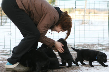 Ensimmäinen ulkoilu, Senni pentujen kanssa |
